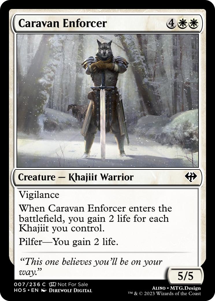 When Caravan Enforcer enters the battlefield, you gain 2 life for each Khajiit you control.