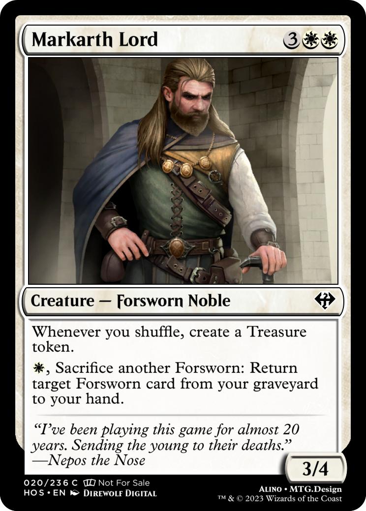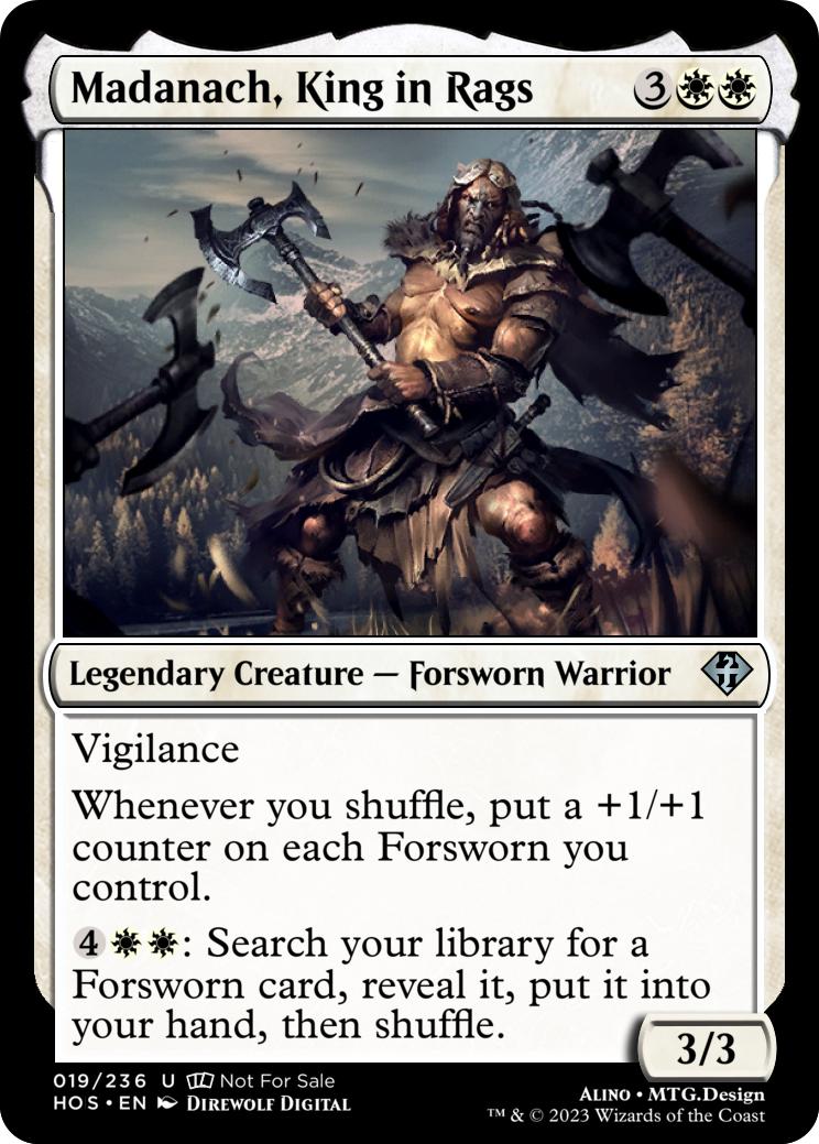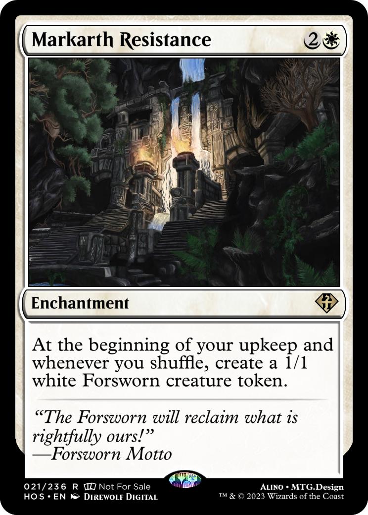 At the beginning of your upkeep and whenever you shuffle, create a 1/1 white Forsworn creature token.