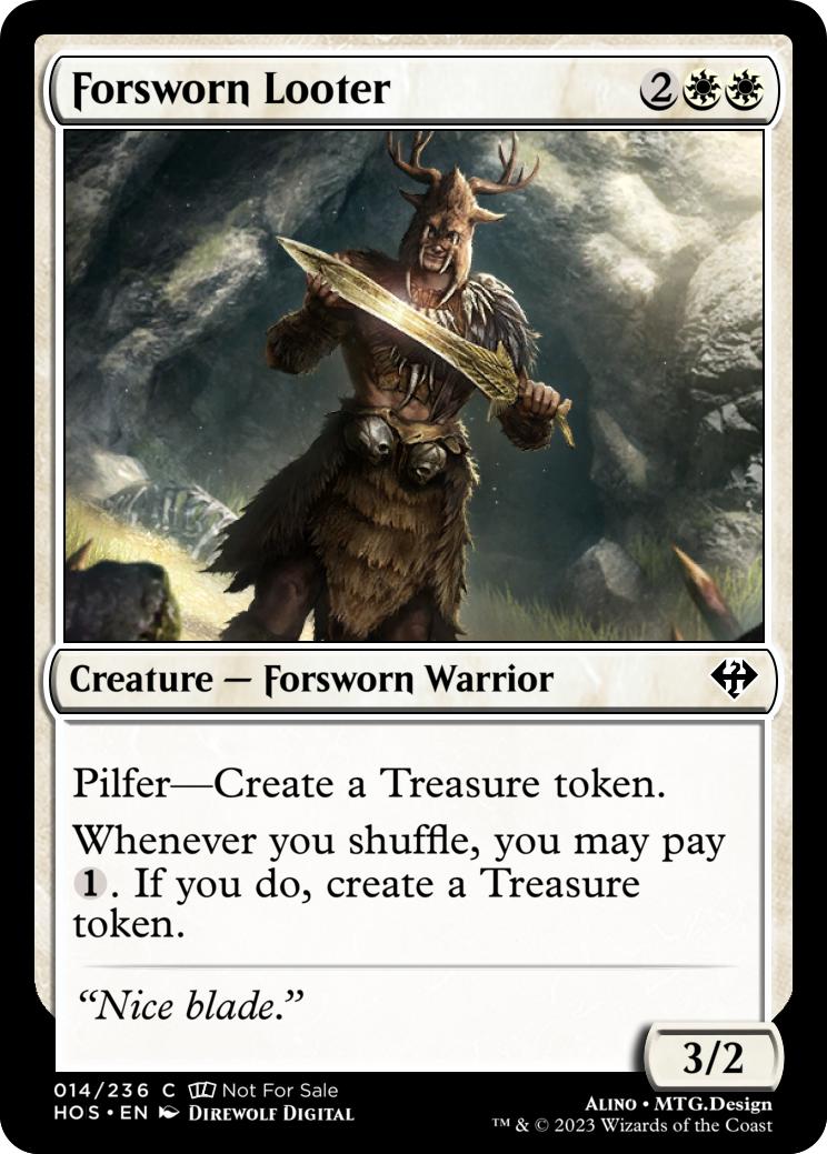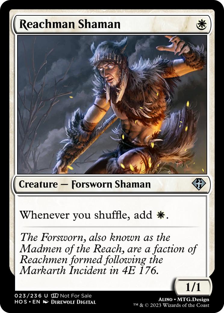 Whenever you shuffle, put a +1/+1 counter on each Forsworn you control.