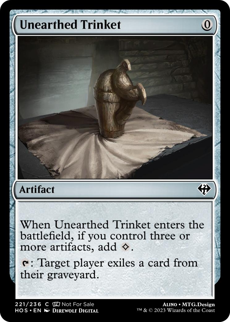 When Unearthed Trinket enters the battlefield, if you control three or more artifacts, add {C}.