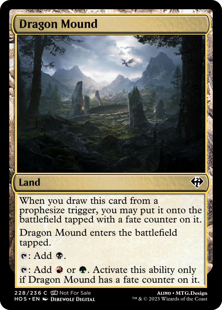 {T}: Add {R} or {G}. Activate this ability only if Dragon Mound has a fate counter on it.