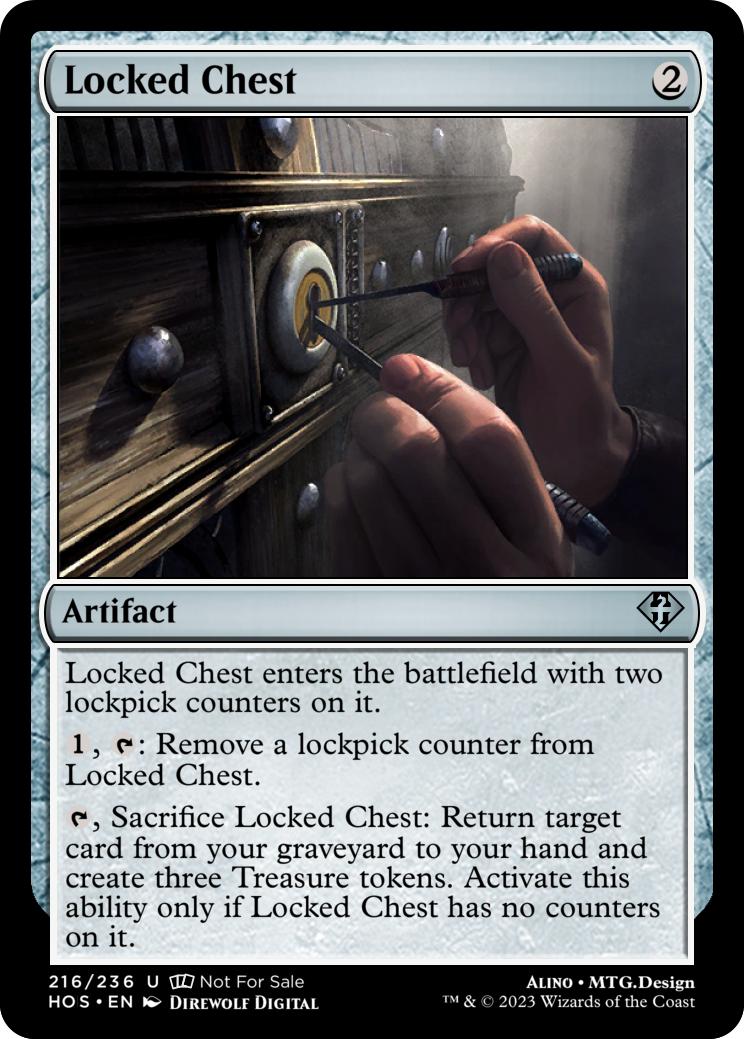 {T}, Sacrifice Locked Chest: Return target card from your graveyard to your hand and create three Treasure tokens. Activate this ability only if Locked Chest has no counters on it.