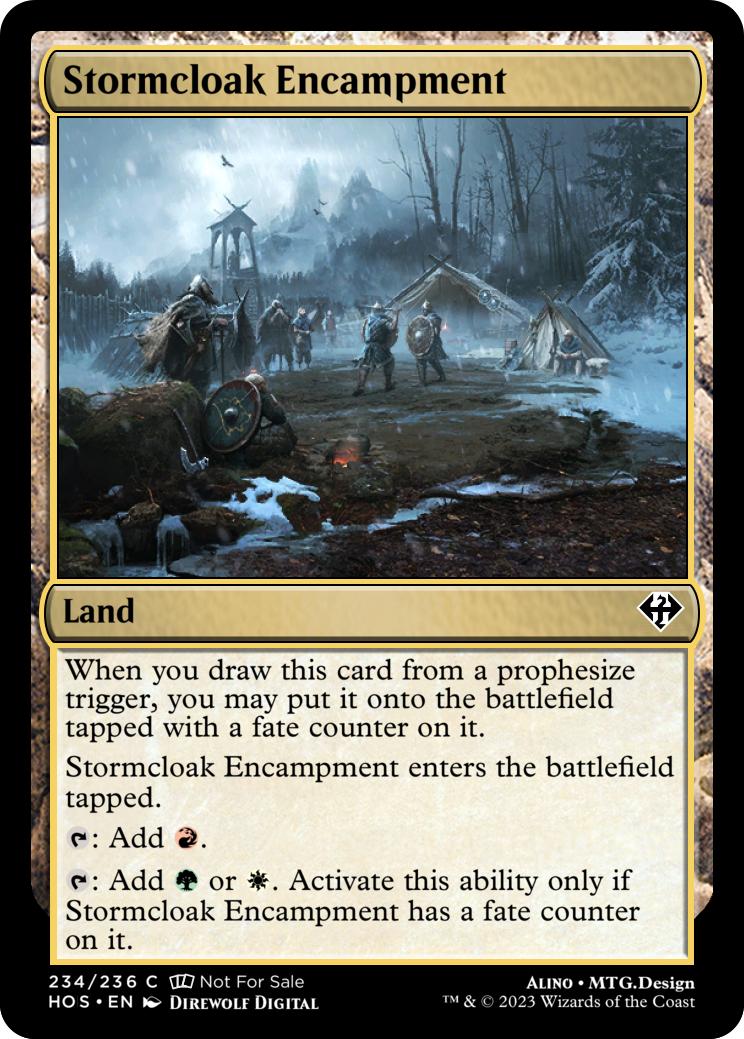 {T}: Add {G} or {W}. Activate this ability only if Stormcloak Encampment has a fate counter on it.