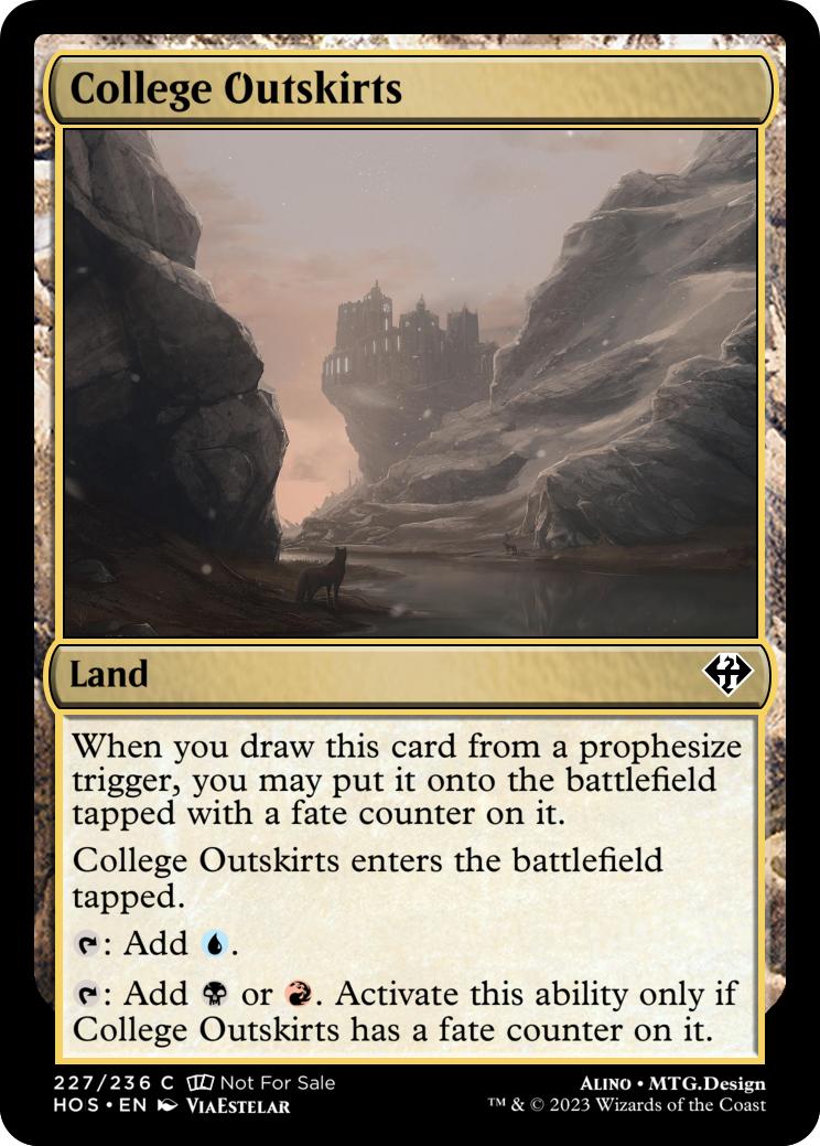 {T}: Add {B} or {R}. Activate this ability only if College Outskirts has a fate counter on it.