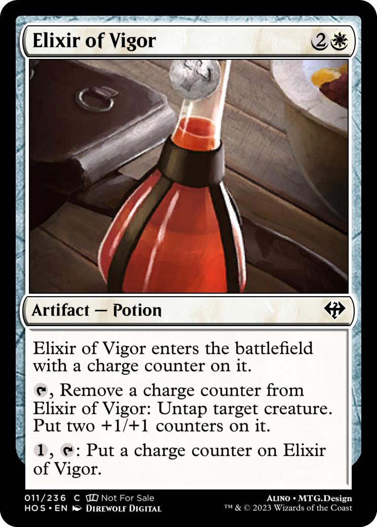 Elixir of Vigor enters the battlefield with a charge counter on it.