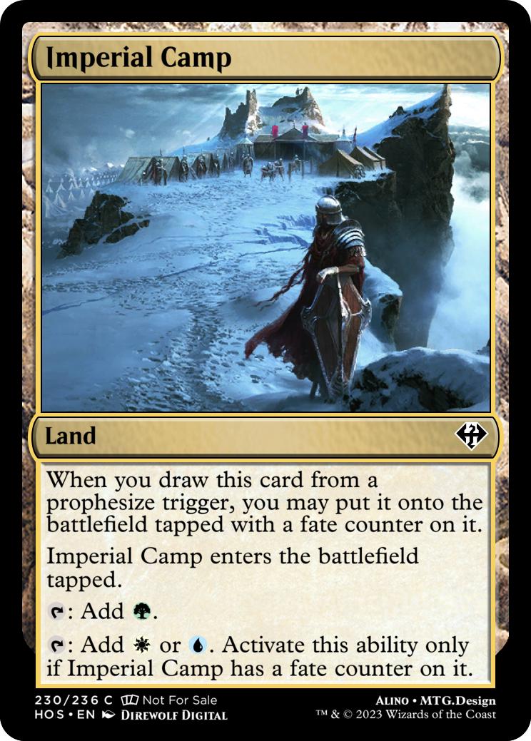 {T}: Add {W} or {U}. Activate this ability only if Imperial Camp has a fate counter on it.