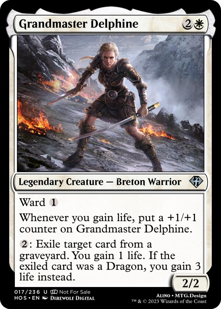 Whenever you gain life, put a +1/+1 counter on Grandmaster Delphine.