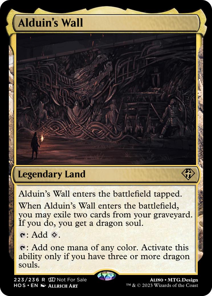 When Alduin's Wall enters the battlefield, you may exile two cards from your graveyard. If you do, you get a dragon soul.