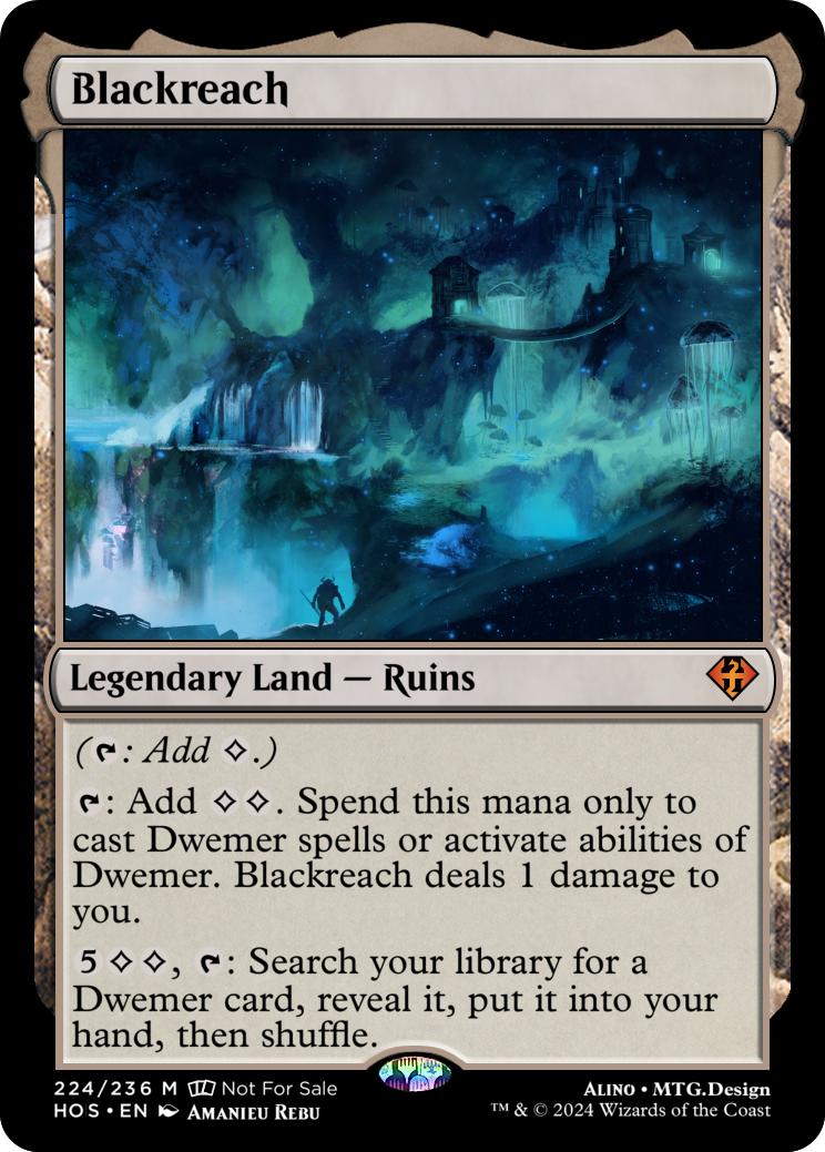 {T}: Add {C}{C}. Spend this mana only to cast Dwemer spells or activate abilities of Dwemer. Blackreach deals 1 damage to you.