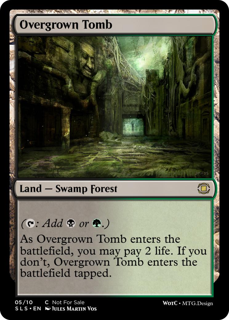As Overgrown Tomb enters the battlefield, you may pay 2 life. If you don't, Overgrown Tomb enters the battlefield tapped.