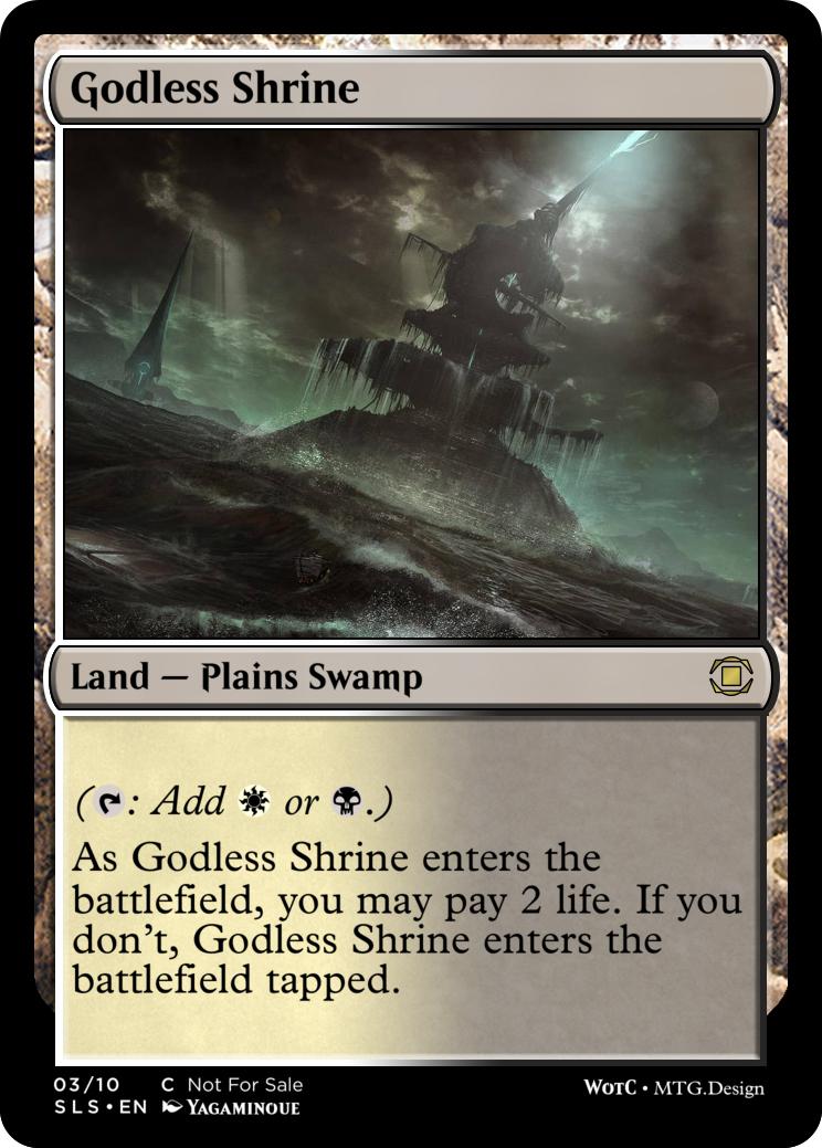 As Godless Shrine enters the battlefield, you may pay 2 life. If you don't, Godless Shrine enters the battlefield tapped.