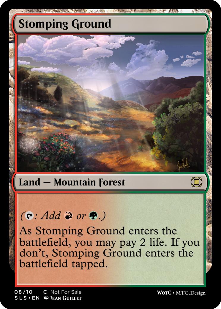 As Stomping Ground enters the battlefield, you may pay 2 life. If you don't, Stomping Ground enters the battlefield tapped.