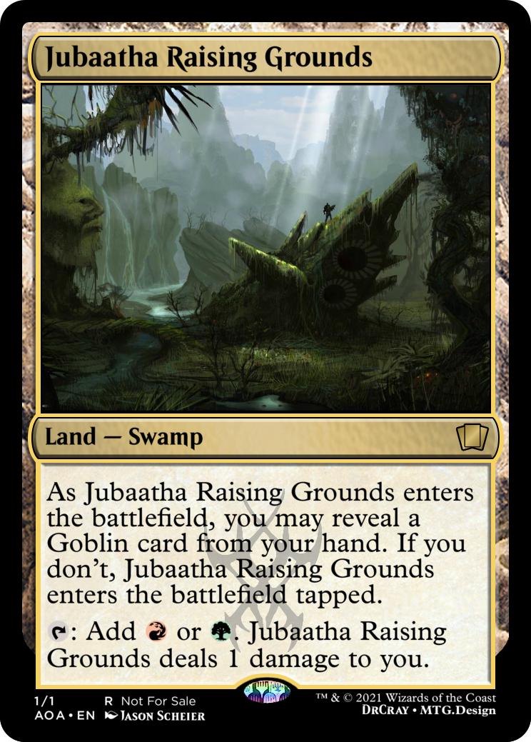 As Jubaatha Raising Grounds enters the battlefield, you may reveal a Goblin card from your hand. If you don't, Jubaatha Raising Grounds enters the battlefield tapped.