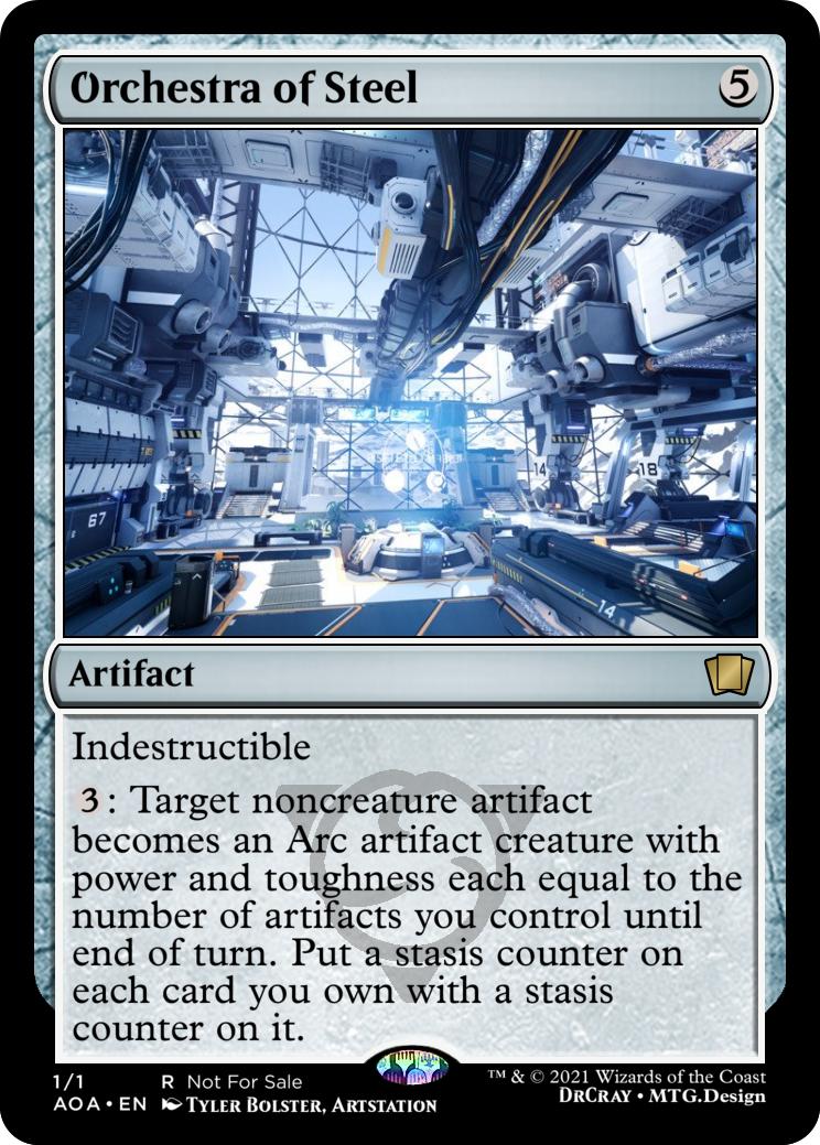 {3}: Target noncreature artifact becomes an Arc artifact creature with power and toughness each equal to the number of artifacts you control until end of turn. Put a stasis counter on each card you own with a stasis counter on it.