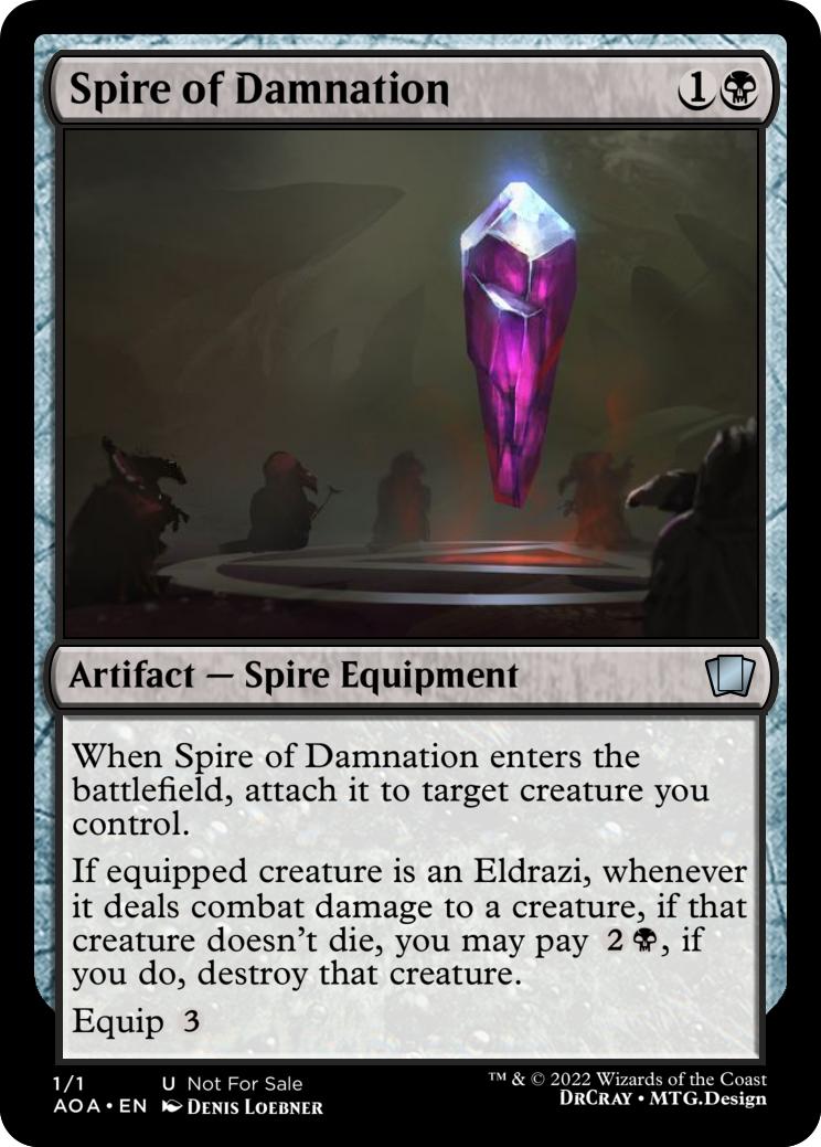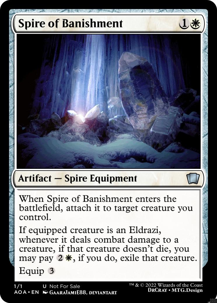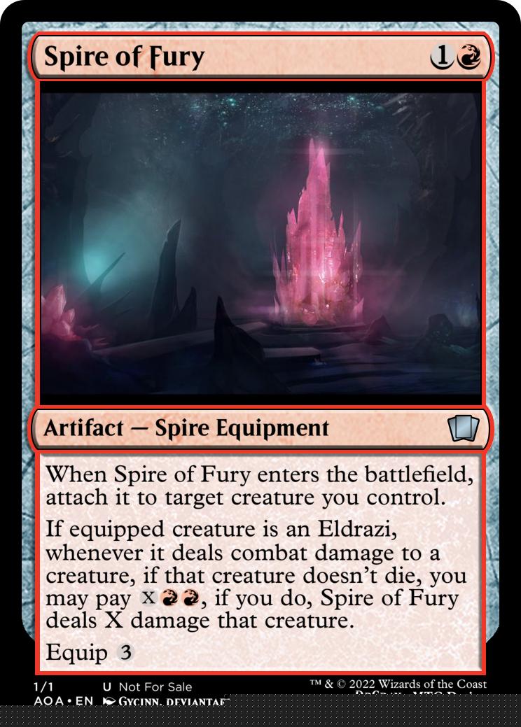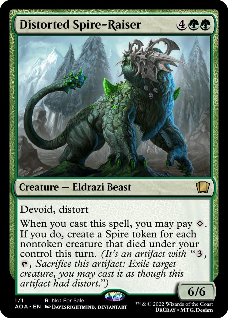 Whenever a creature you control dies, create a Spire token (It’s a colourless artifact with “{3}, {t}, sacrifice this artifact: Exile target creature, you may cast it as though this artifact had distort”)