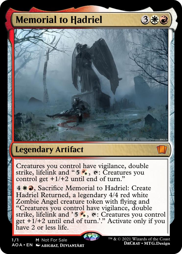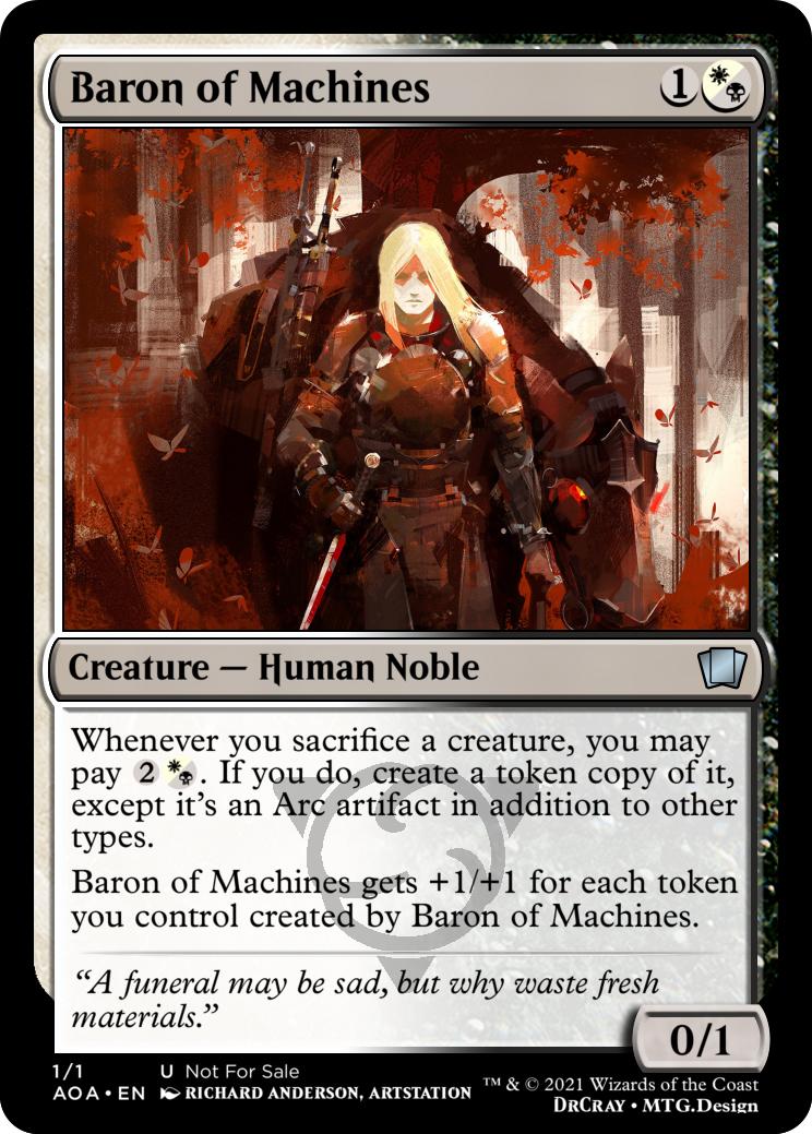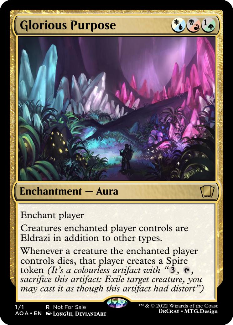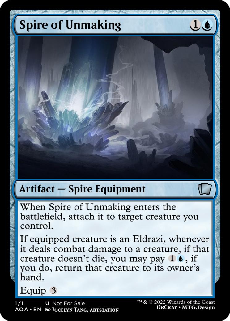 Whenever a creature you control dies, create a Spire token (It’s a colourless artifact with “{3}, {t}, sacrifice this artifact: Exile target creature, you may cast it as though this artifact had distort”)