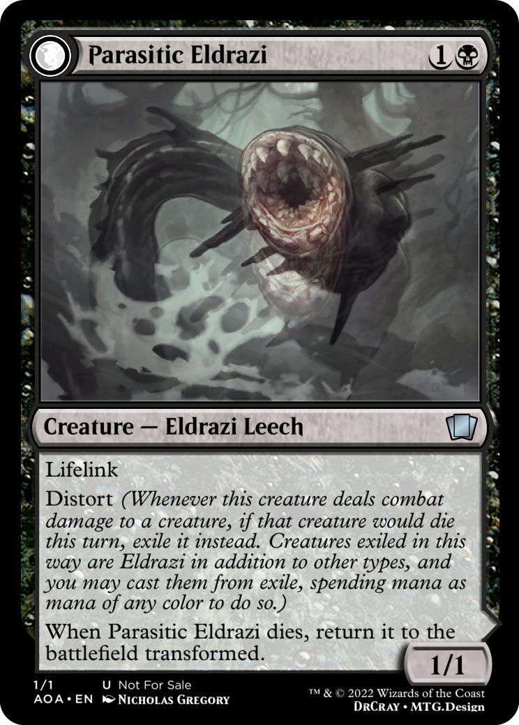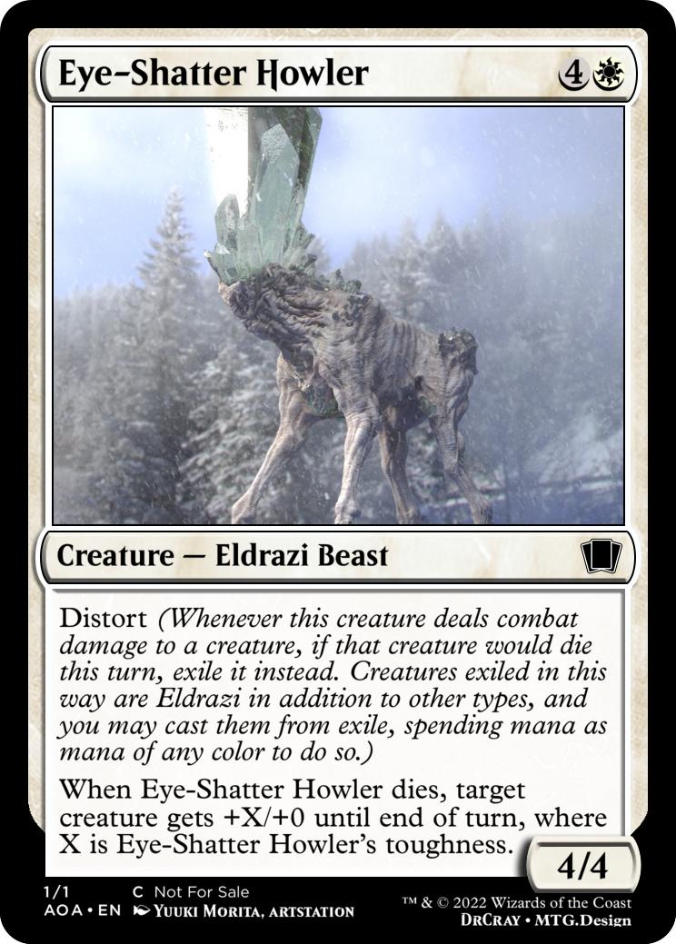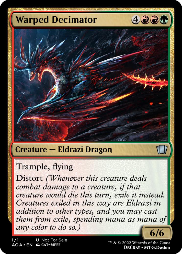 Distort (Whenever this creature deals combat damage to a creature, if that creature would die this turn, exile it instead. Creatures exiled in this way are Eldrazi in addition to other types, and you may cast them from exile, spending mana as mana of any color to do so.)