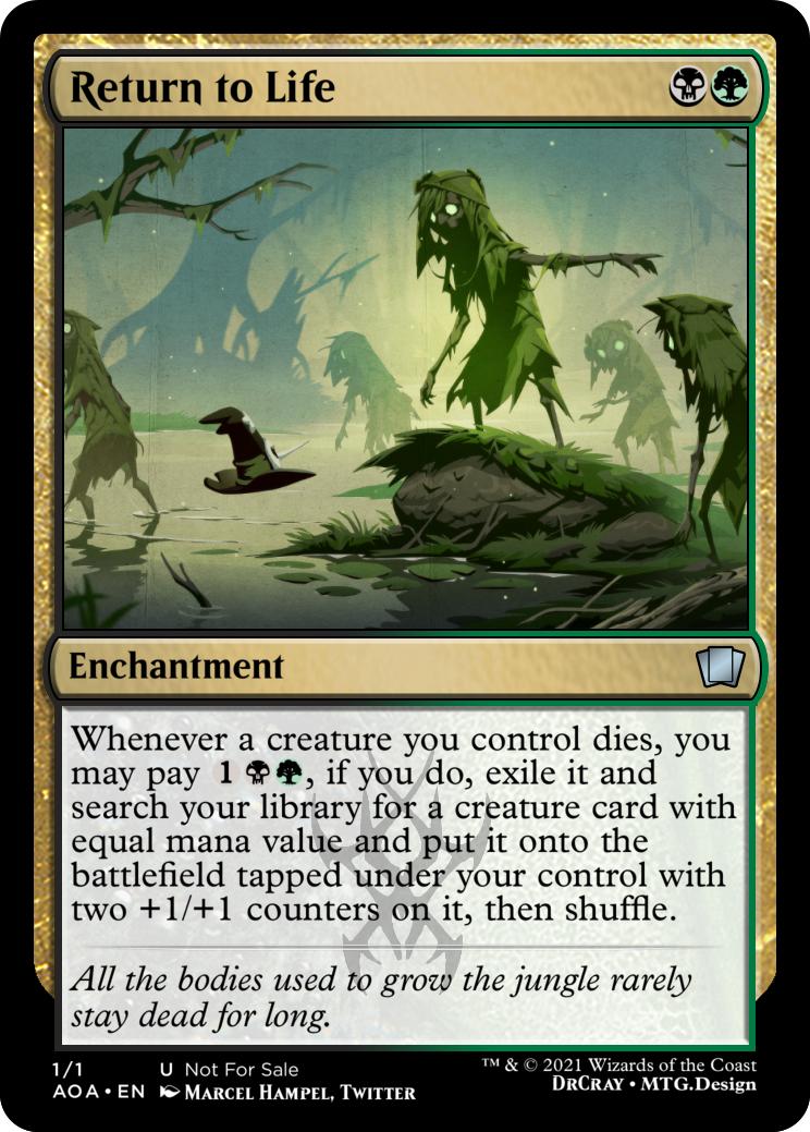 Whenever a creature you control dies, you may pay {1}{B}{G}, if you do, exile it and search your library for a creature card with equal mana value and put it onto the battlefield tapped under your control with two +1/+1 counters on it, then shuffle.