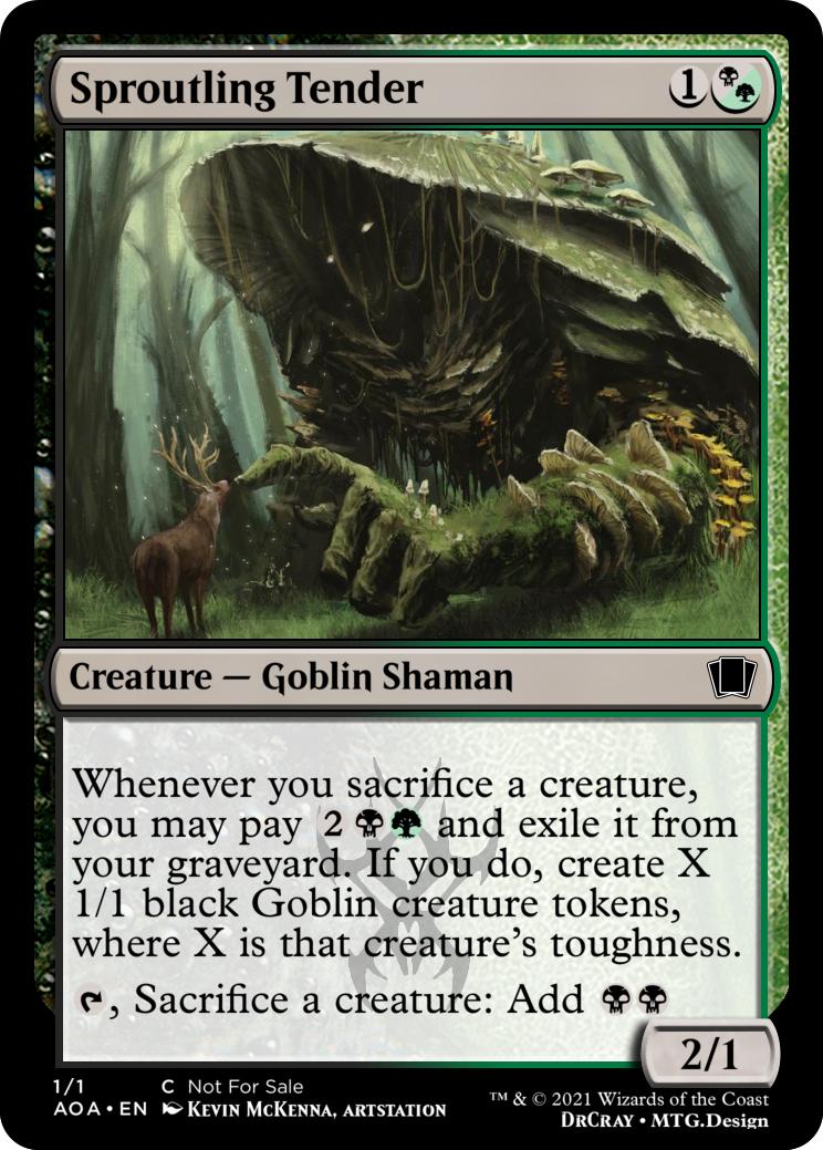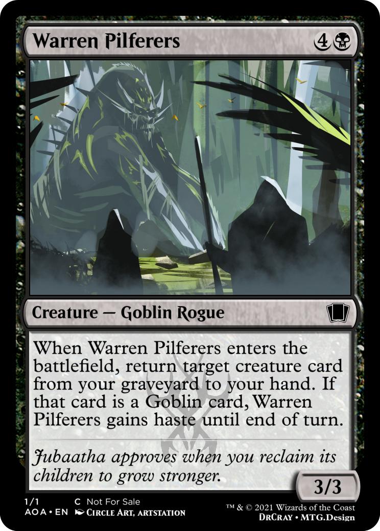 {1}{B}, Exile a creature card from your graveyard: Create a 1/1 black Goblin creature token.
