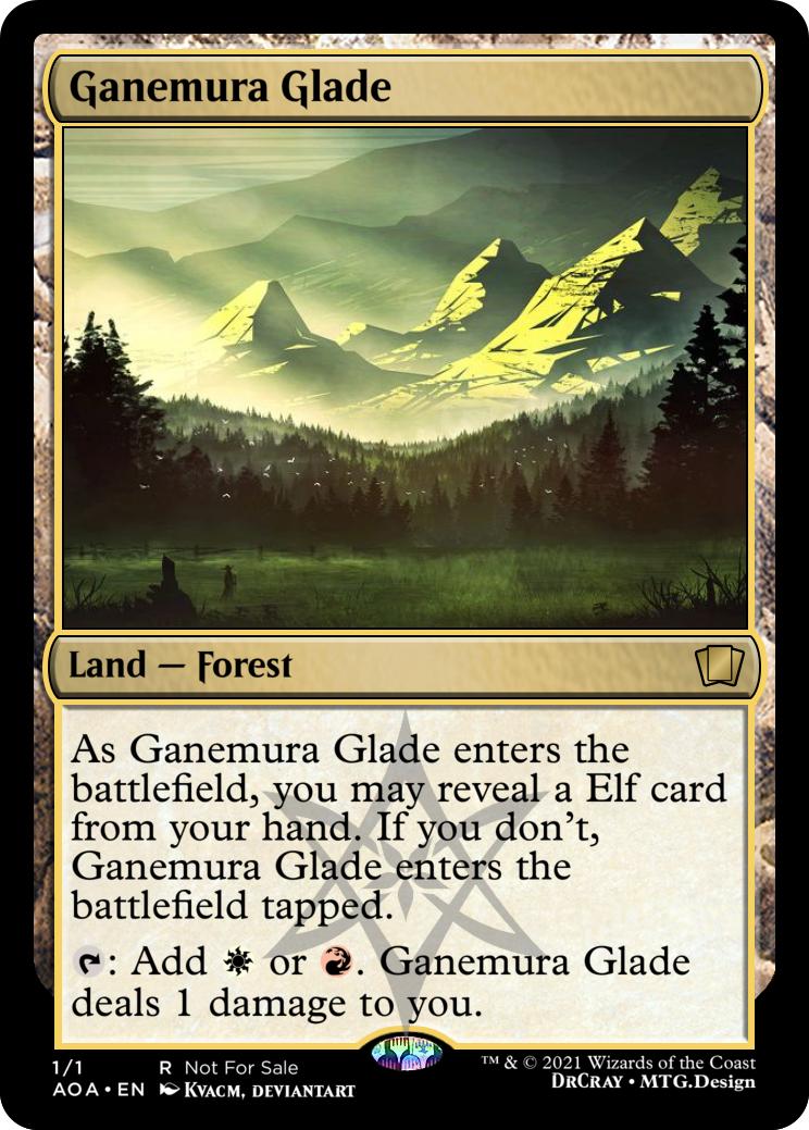 As Ganemura Glade enters the battlefield, you may reveal a Elf card from your hand. If you don't, Ganemura Glade enters the battlefield tapped.