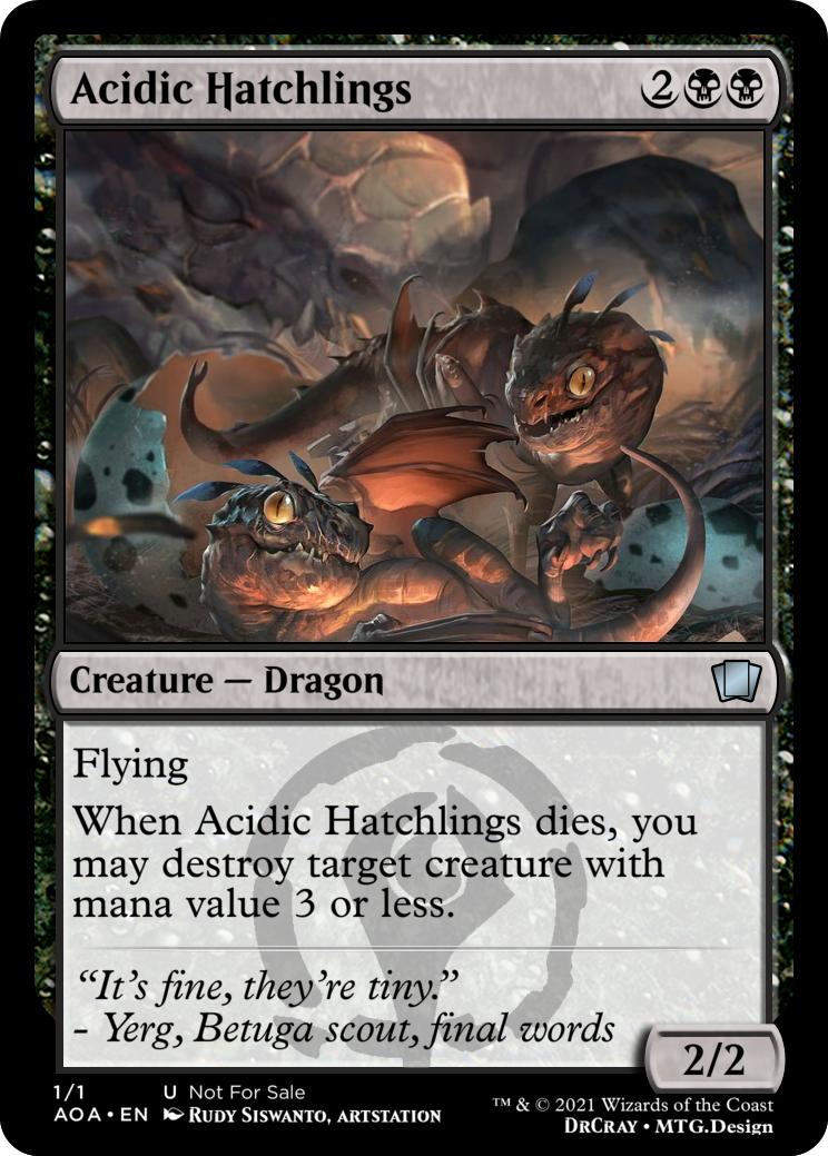 When Acidic Hatchlings dies, you may destroy target creature with mana value 3 or less.