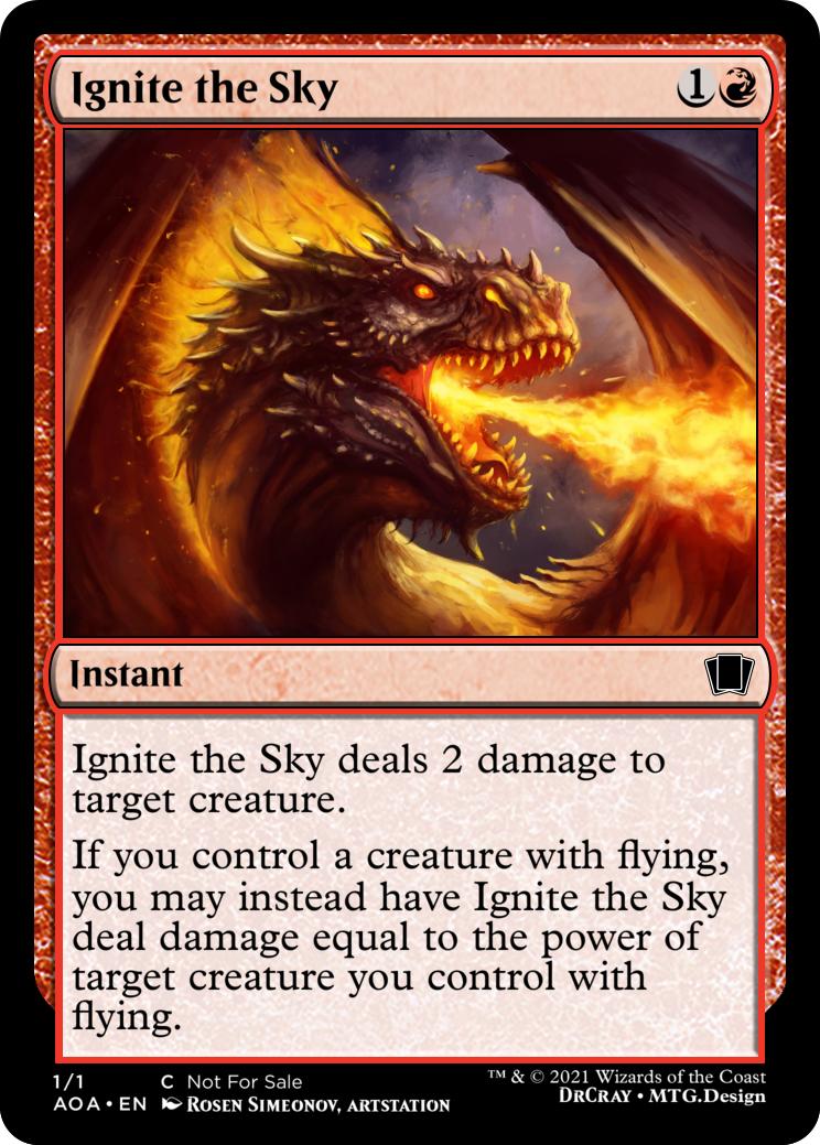 If you control a creature with flying, you may instead have Ignite the Sky deal damage equal to the power of target creature you control with flying.