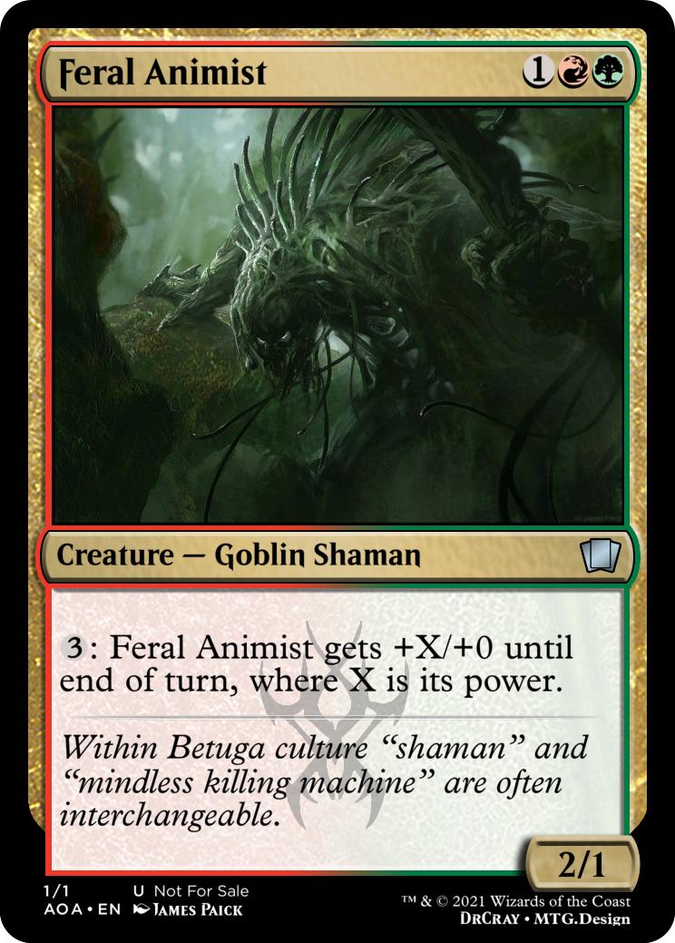 {3}: Feral Animist gets +X/+0 until end of turn, where X is its power.