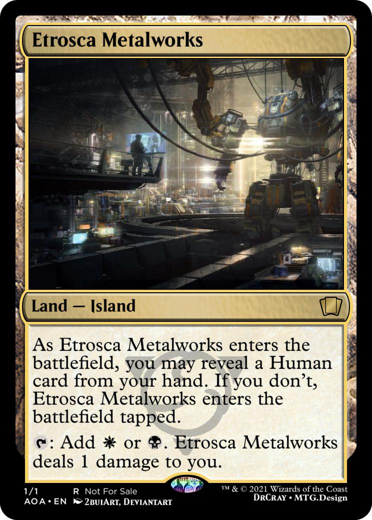 As Etrosca Metalworks enters the battlefield, you may reveal a Human card from your hand. If you don't, Etrosca Metalworks enters the battlefield tapped.