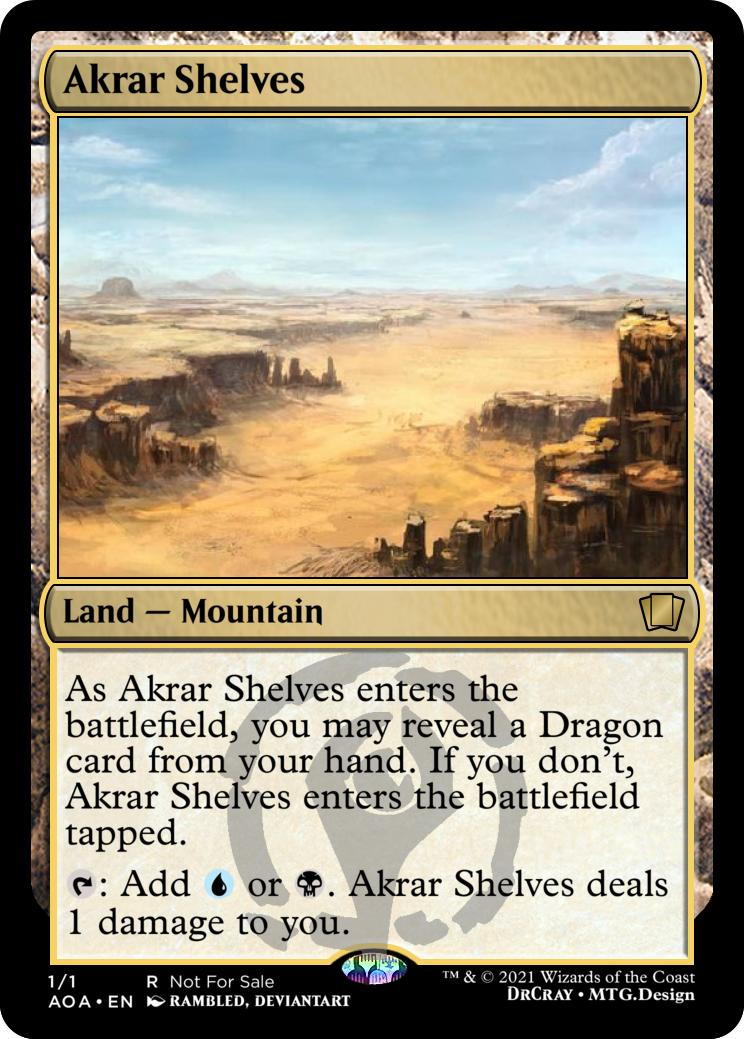 As Akrar Shelves enters the battlefield, you may reveal a Dragon card from your hand. If you don't, Akrar Shelves enters the battlefield tapped.
