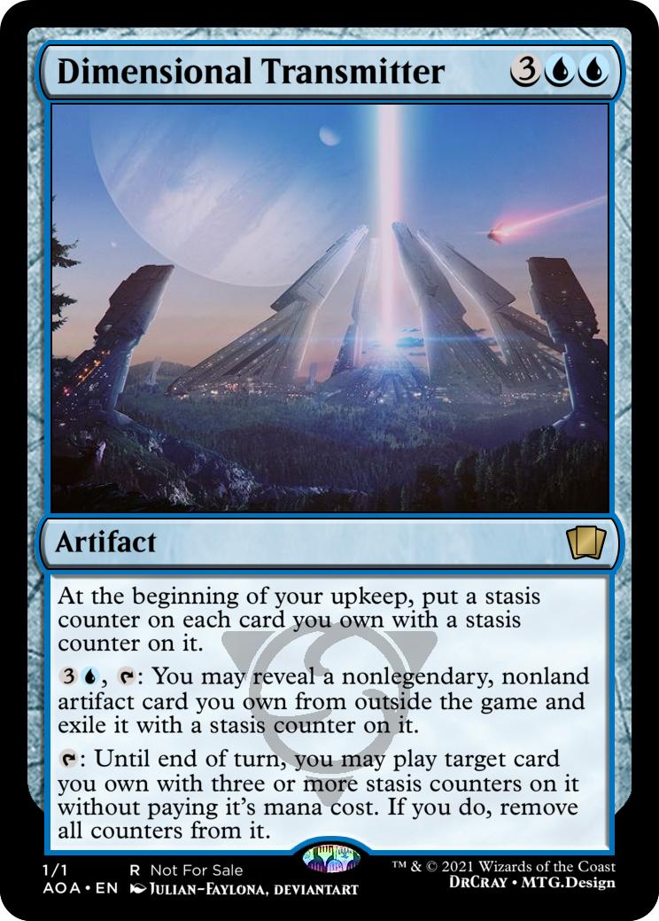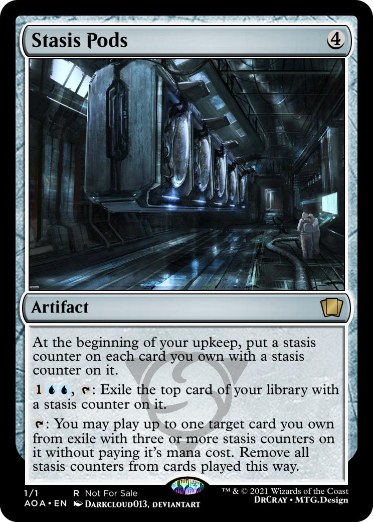 {3}{U}, {T}: You may reveal a nonlegendary, nonland artifact card you own from outside the game and exile it with a stasis counter on it.