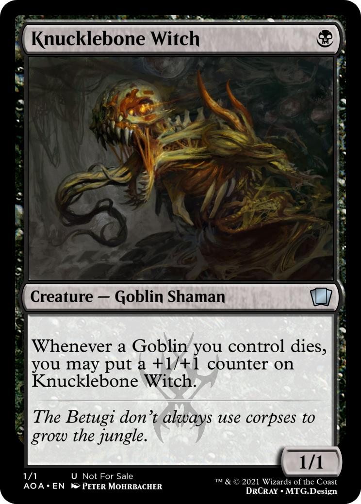Whenever a Goblin you control dies, you may put a +1/+1 counter on Knucklebone Witch.
