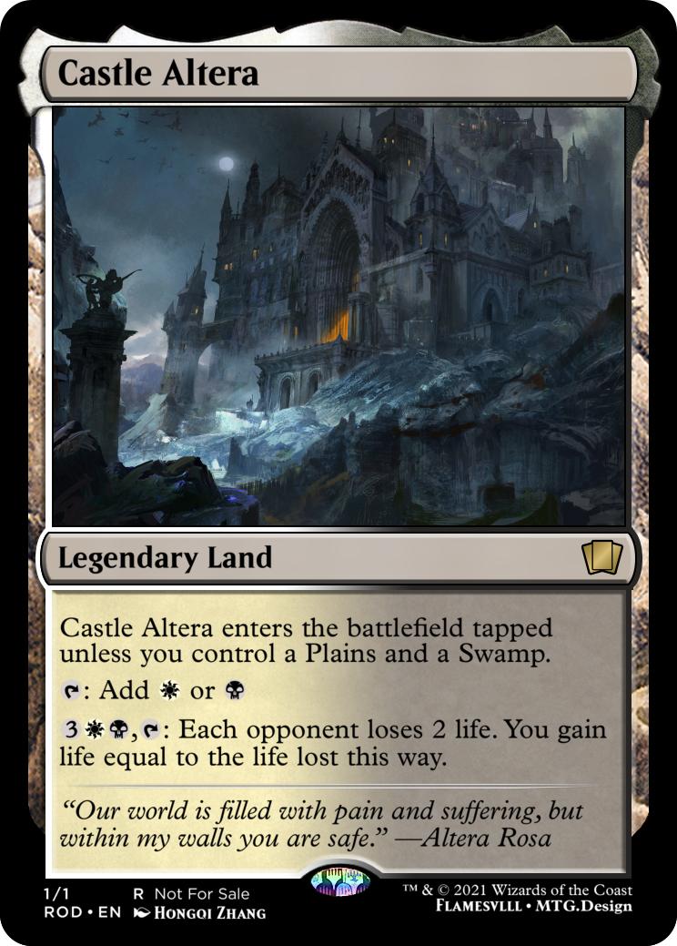 Castle Altera enters the battlefield tapped unless you control a Plains and a Swamp.