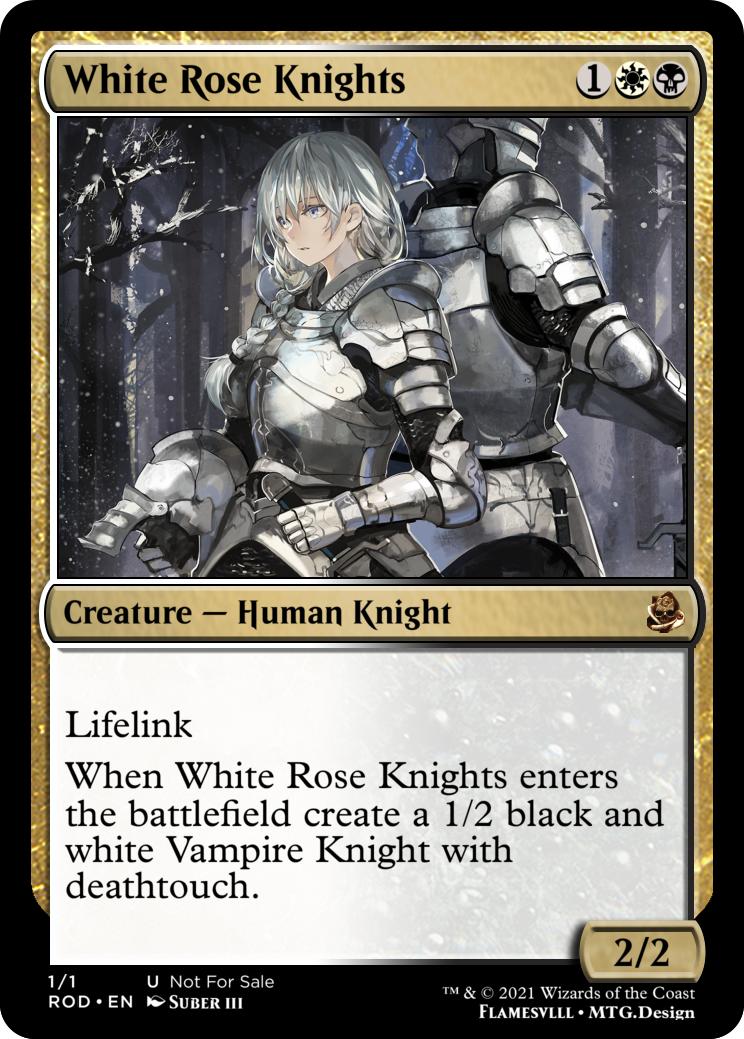 When White Rose Knights enters the battlefield create a 1/2 black and white Vampire Knight with deathtouch.