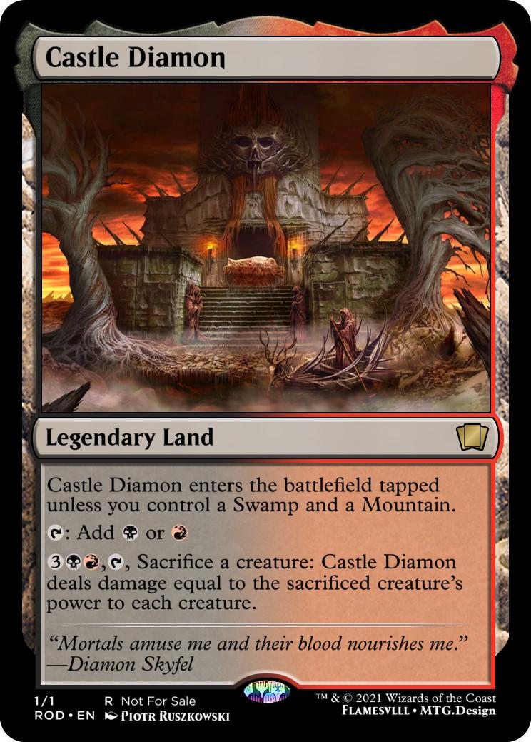 Castle Diamon enters the battlefield tapped unless you control a Swamp and a Mountain.