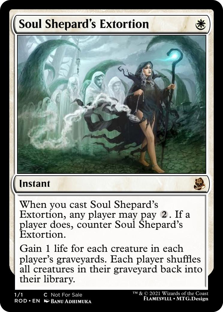 When you cast Soul Shepard's Extortion, any player may pay {2}. If a player does, counter Soul Shepard's Extortion.