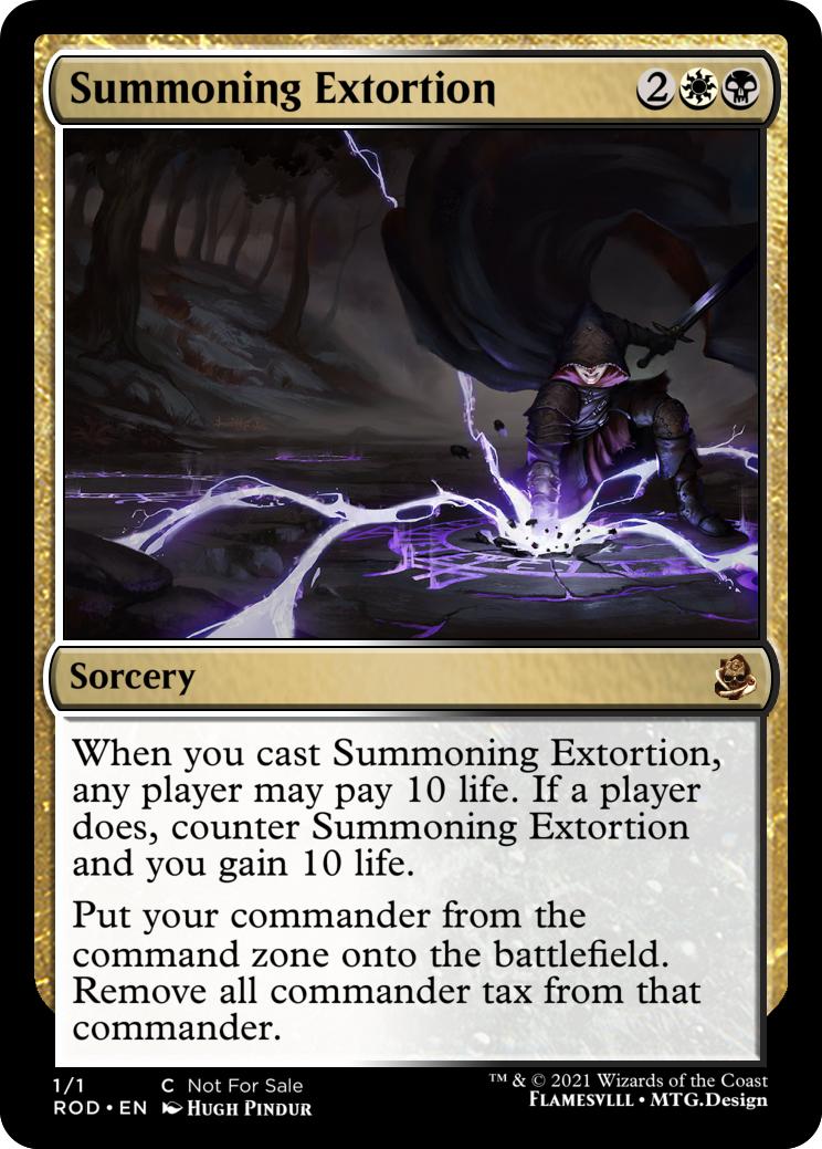 When you cast Summoning Extortion, any player may pay 10 life. If a player does, counter Summoning Extortion and you gain 10 life.