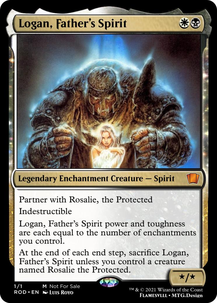 At the end of each end step, sacrifice Logan, Father's Spirit unless you control a creature named Rosalie the Protected.