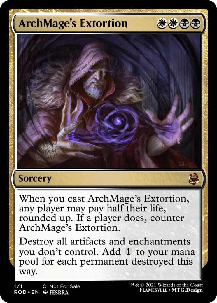 When you cast ArchMage's Extortion, any player may pay half their life, rounded up. If a player does, counter ArchMage's Extortion.