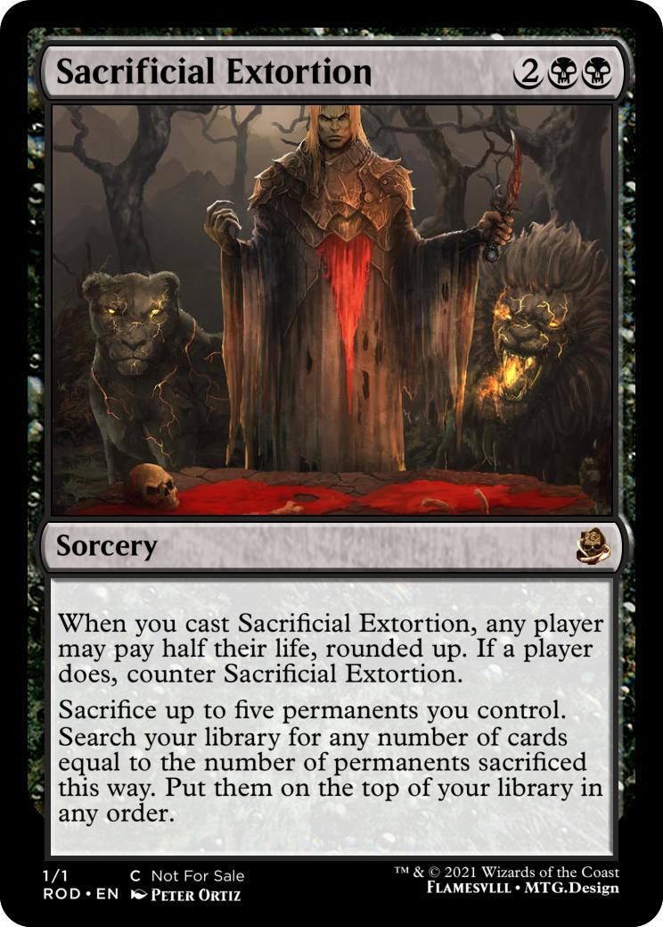 When you cast Sacrificial Extortion, any player may pay half their life, rounded up. If a player does, counter Sacrificial Extortion.