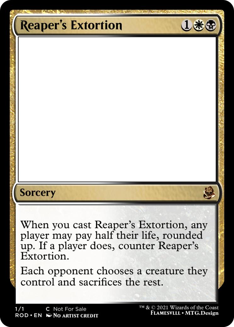 When you cast Reaper's Extortion, any player may pay half their life, rounded up. If a player does, counter Reaper's Extortion.