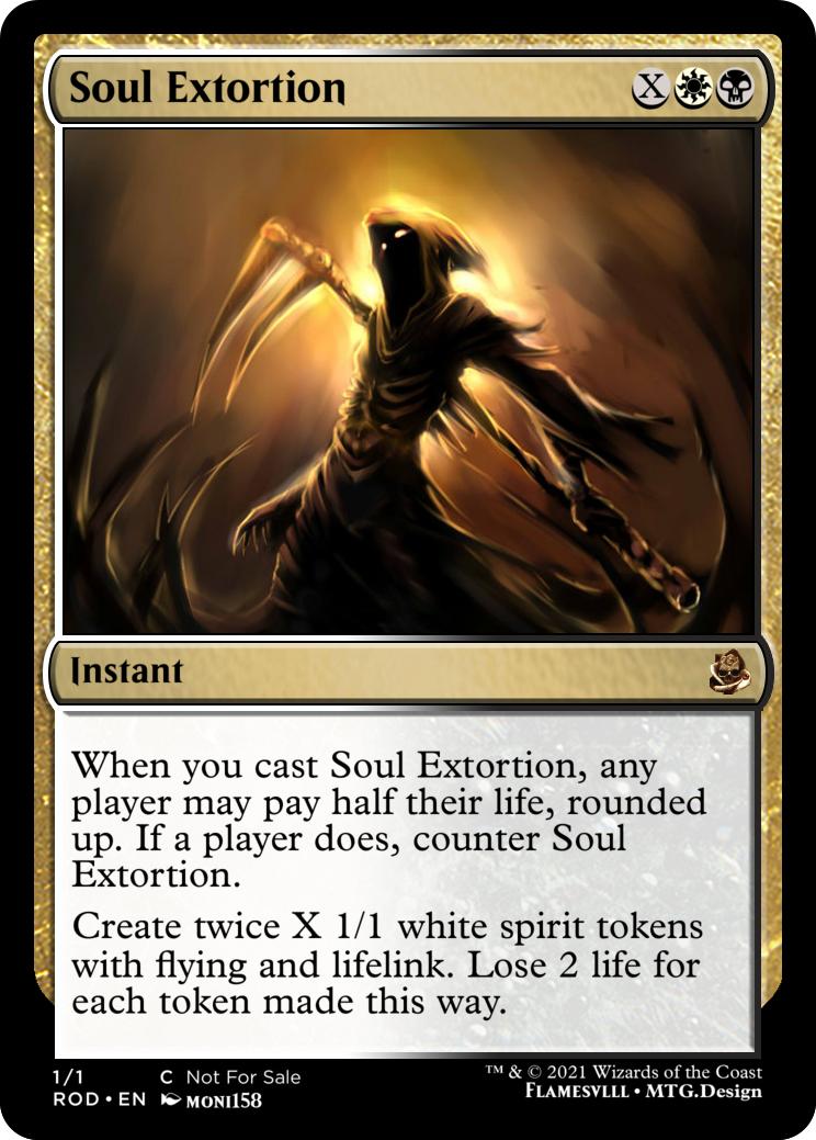 When you cast Soul Extortion, any player may pay half their life, rounded up. If a player does, counter Soul Extortion.