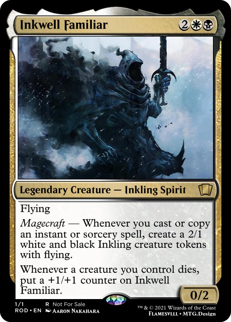 Whenever a creature you control dies, put a +1/+1 counter on Inkwell Familiar.