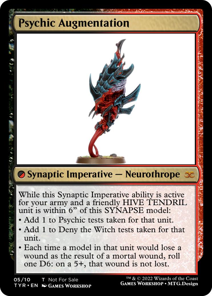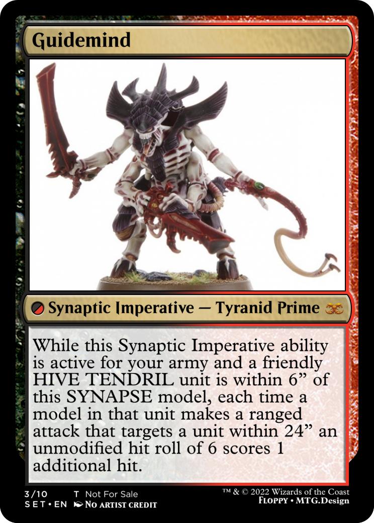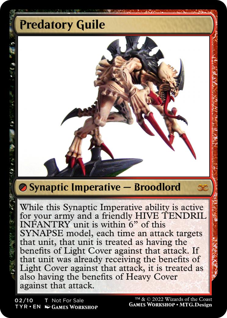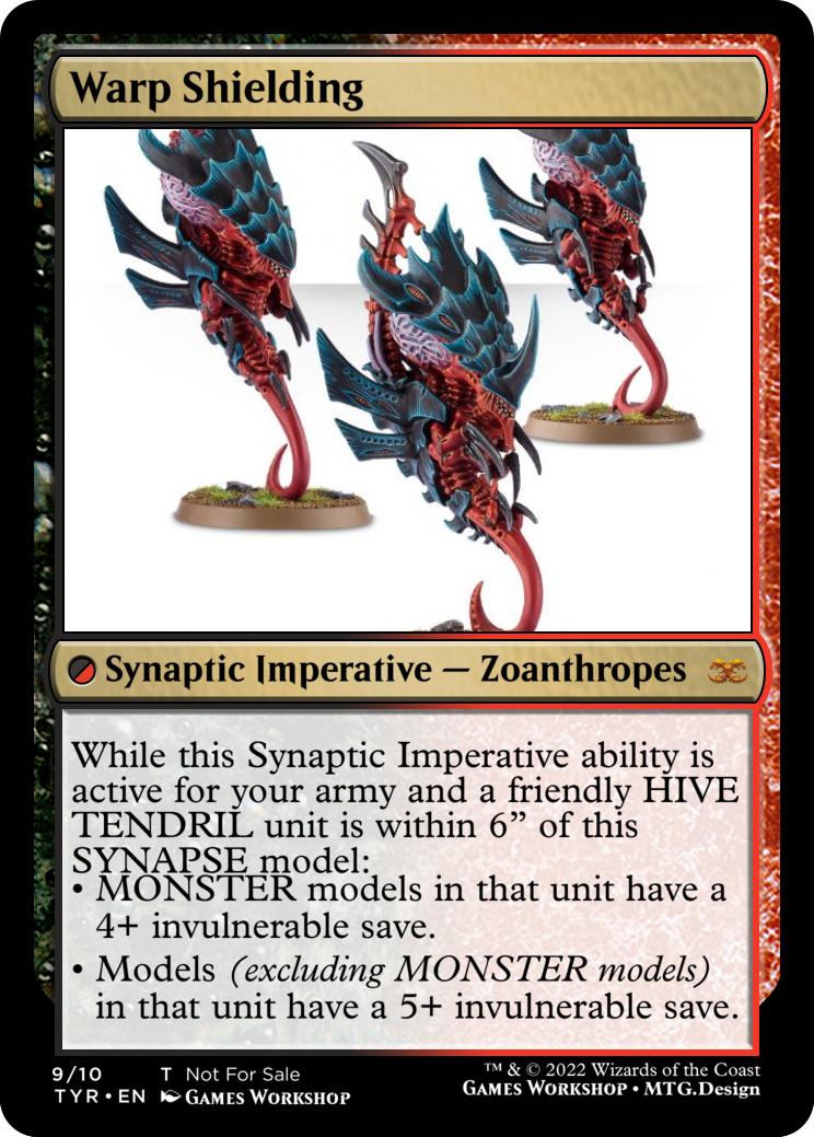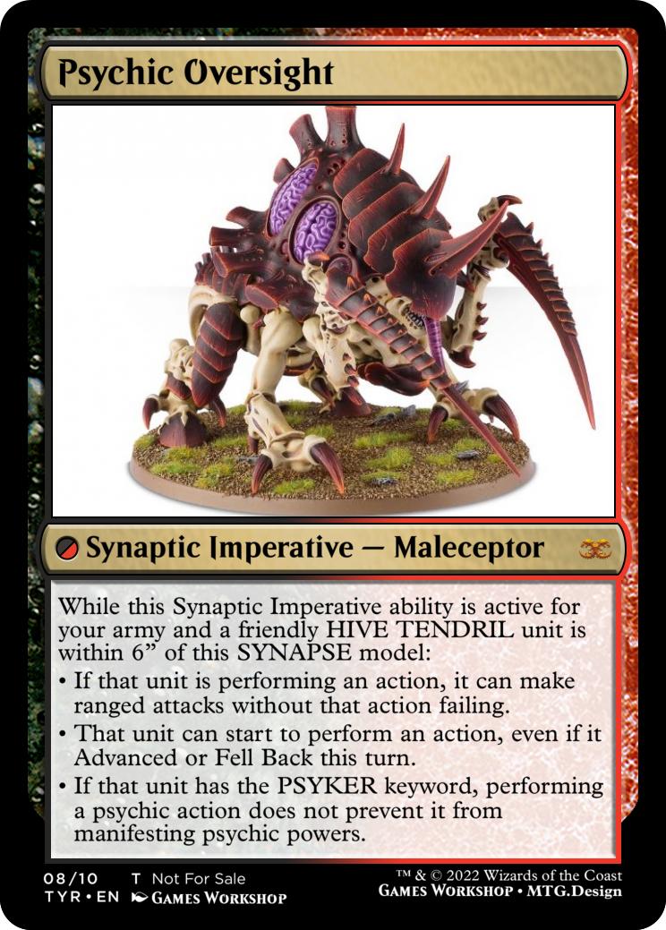 While this Synaptic Imperative ability is active for your army and a friendly HIVE TENDRIL unit is within 6" of this SYNAPSE model, that unit is eligible to declare a charge in a turn in which it Fell Back.