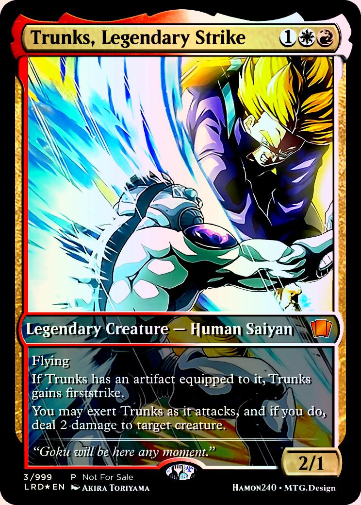 If Trunks blocks an Artifact creature, it gains +2/+0 until the end of the turn.