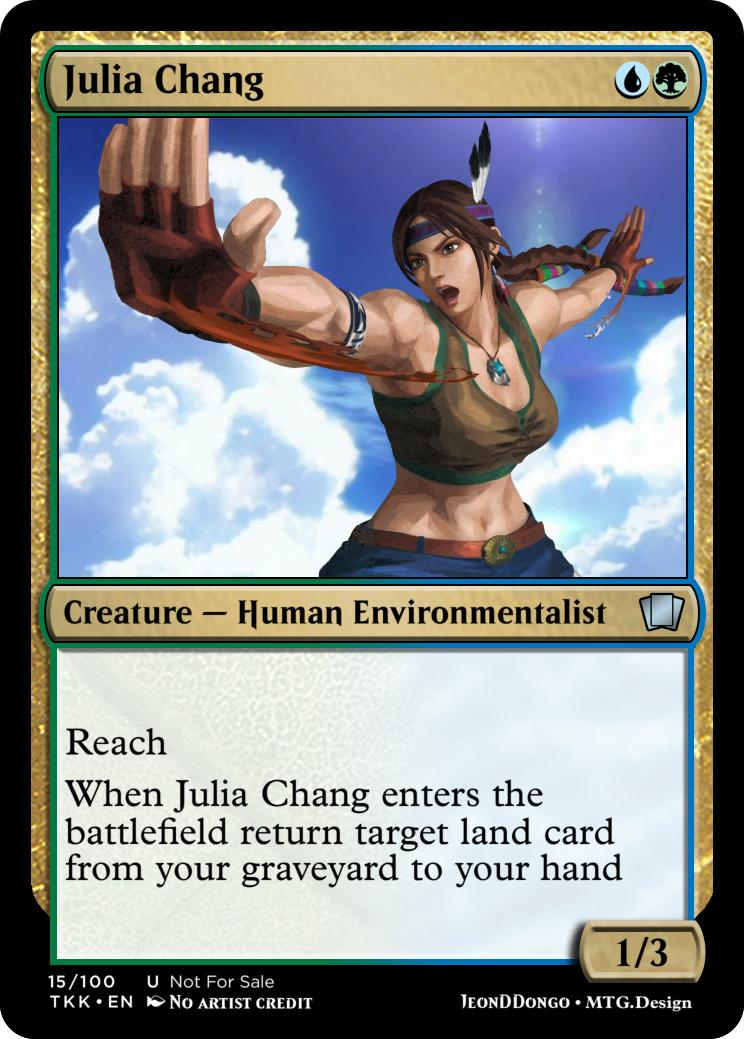 When Julia Chang enters the battlefield return target land card from your graveyard to your hand