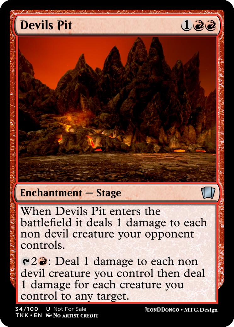 When Devils Pit enters the battlefield it deals 1 damage to each non devil creature your opponent controls.
