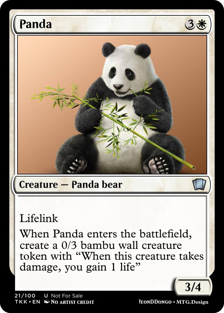 When Panda enters the battlefield, create a 0/3 bambu wall creature token with "When this creature takes damage, you gain 1 life"