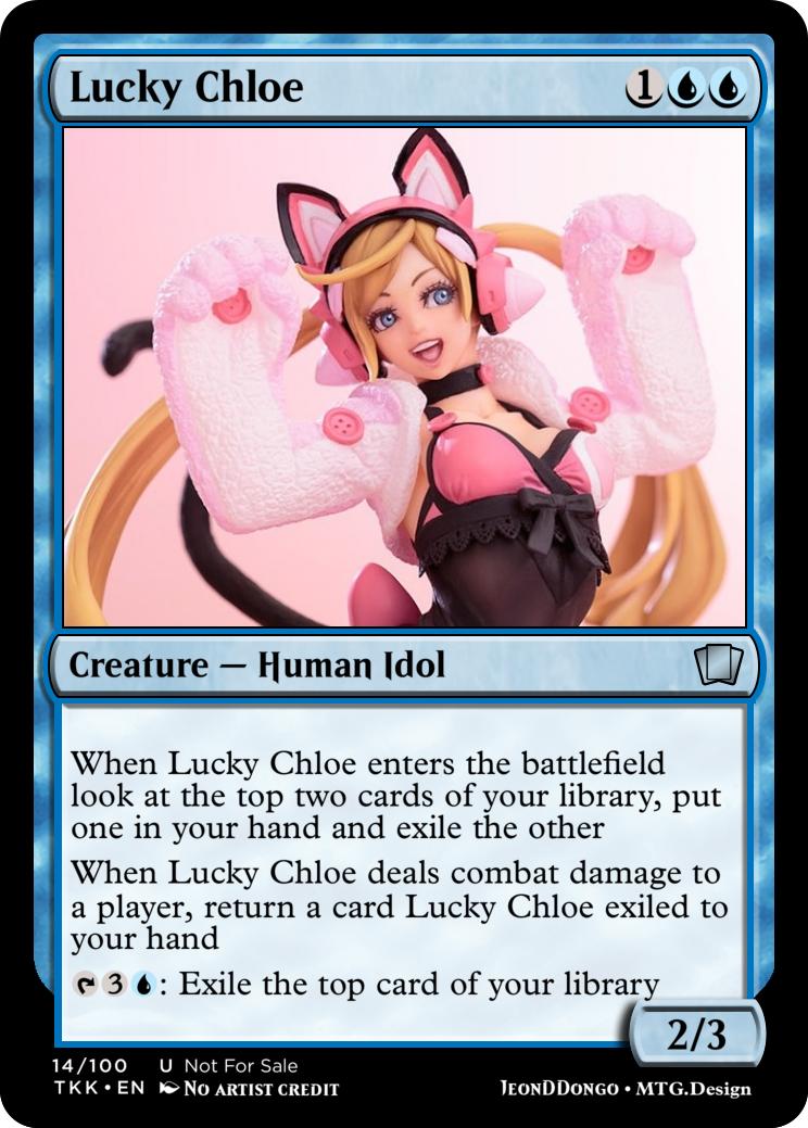 When Lucky Chloe enters the battlefield look at the top two cards of your library, put one in your hand and exile the other