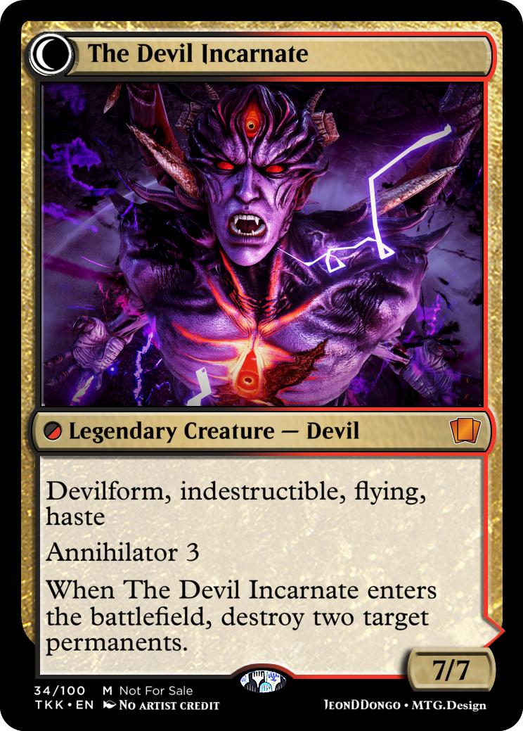 When The Devil Incarnate enters the battlefield, destroy two target permanents.
