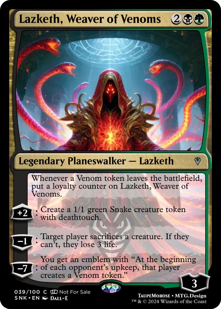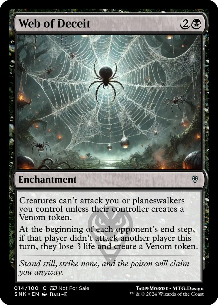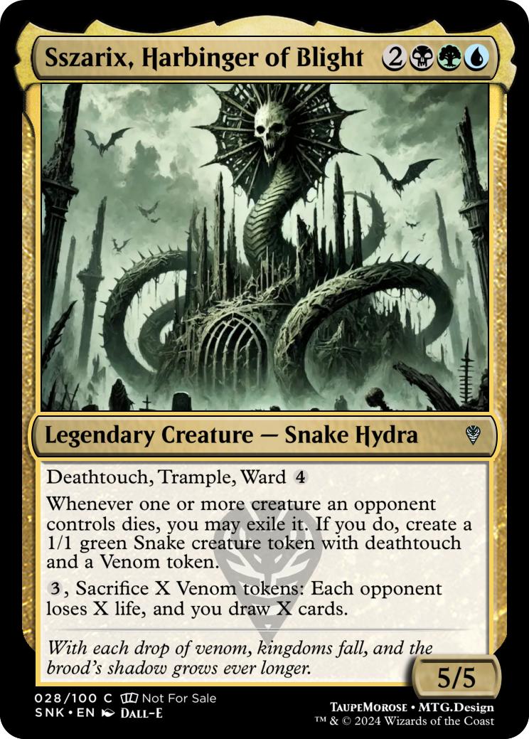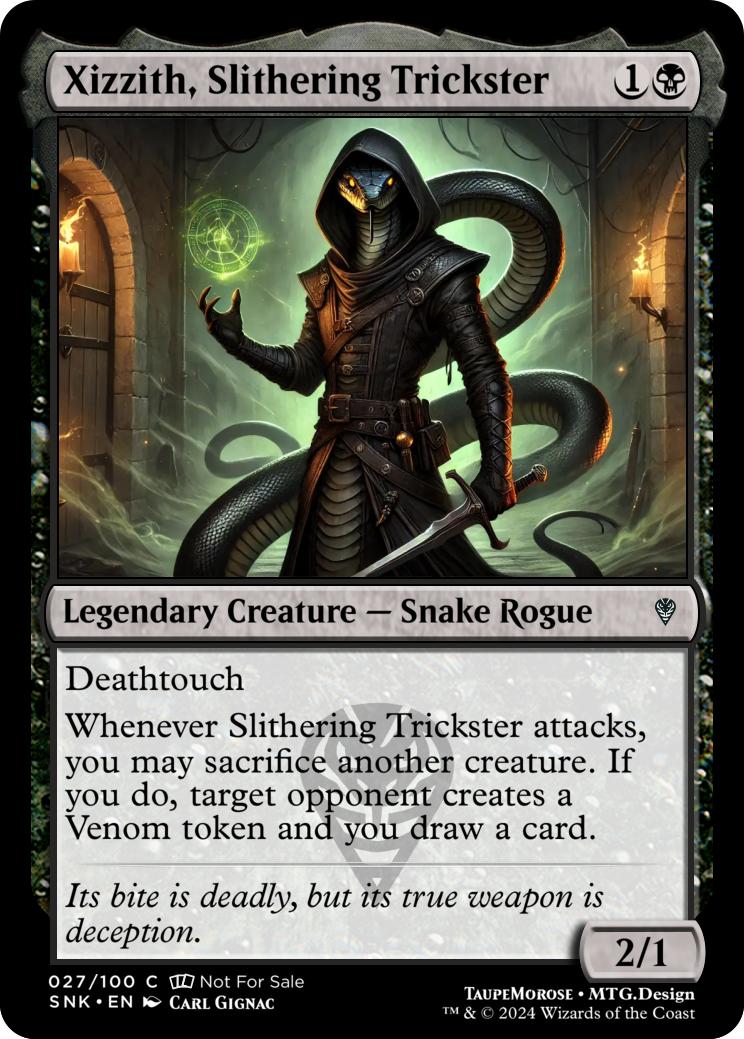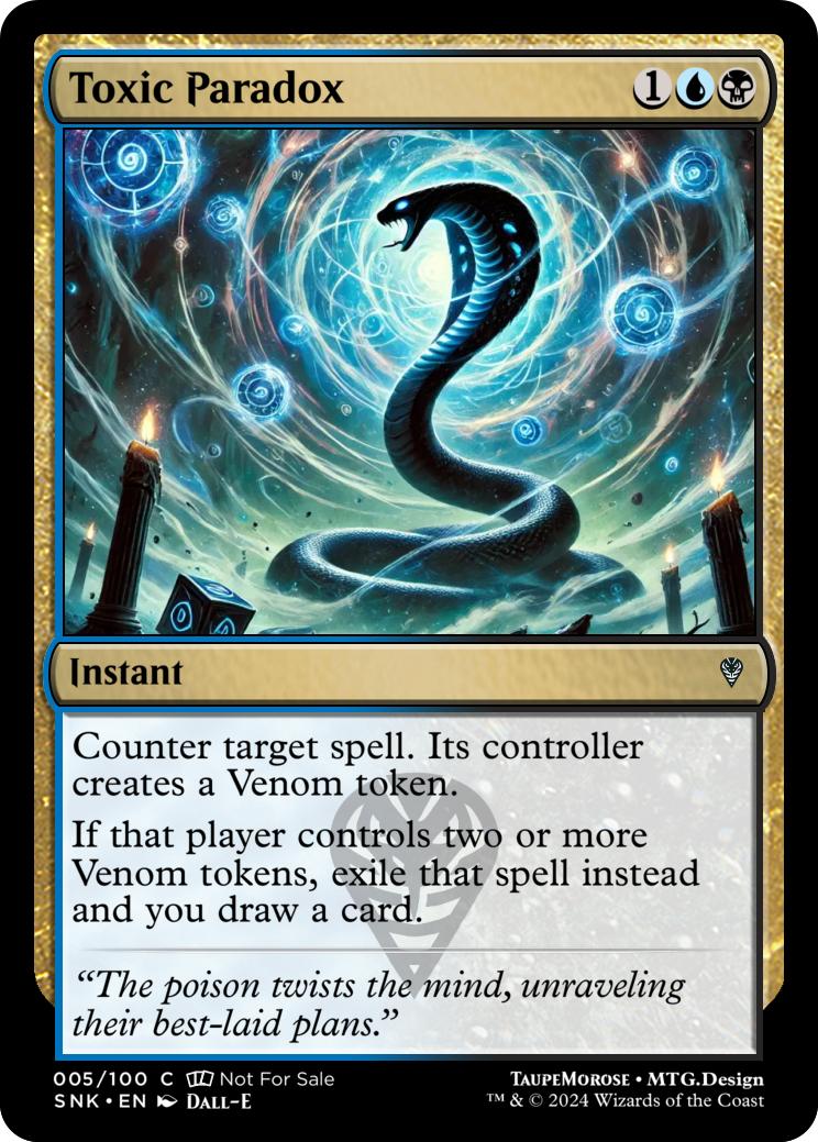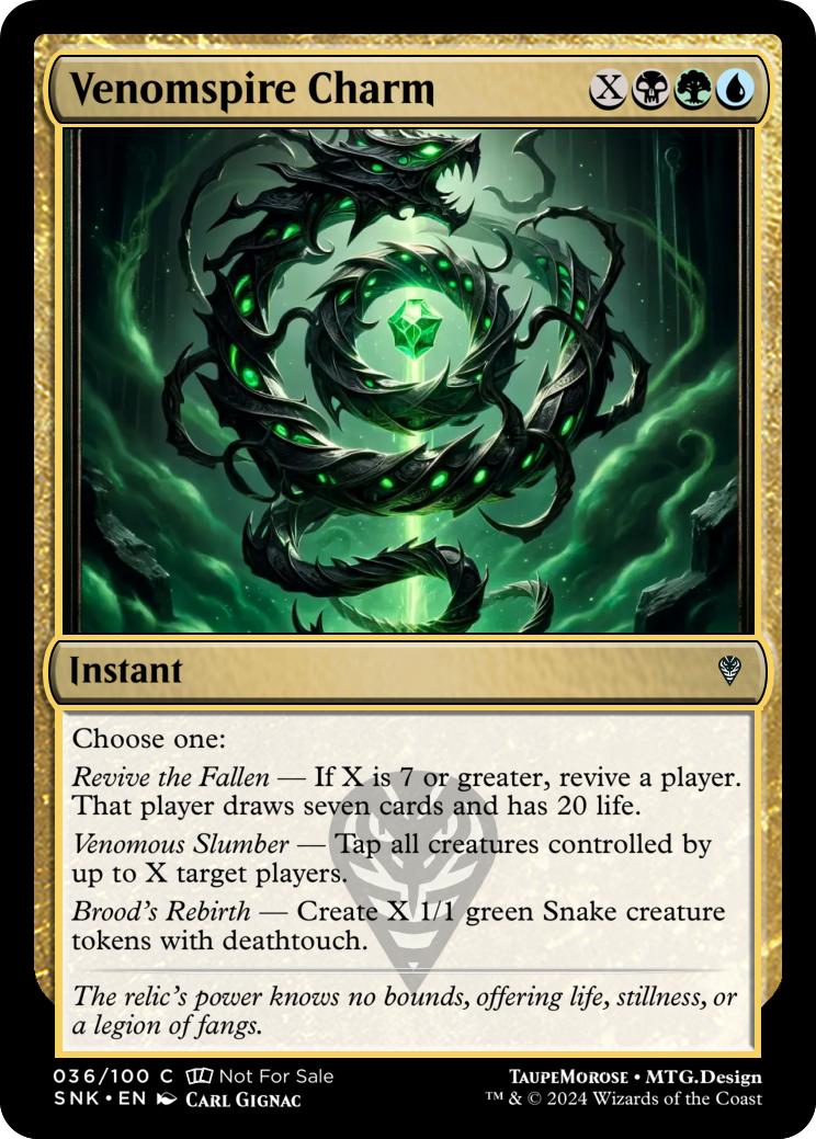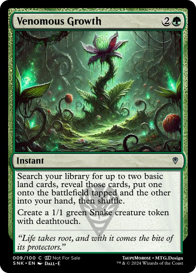Whenever a Snake you control deals combat damage to a player, that player creates a Venom token. (It's an enchantment with "At the beginning of your upkeep, this enchantment deals 1 damage to you. {1}, {T}, Pay 1 life: Destroy this enchantment.")